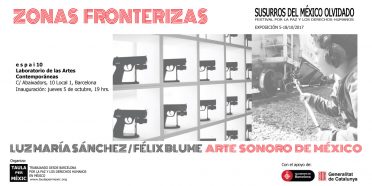 El Festival por la paz y los derechos humanos «Susurros del México olvidado», organizado por la Taula per Mèxic, presenta la exposición Zonas Fronterizas 5 al 18 de octubre de 2017 Inauguración: jueves 5 de octubre, 19 hrs. Espai10 C/ C/ Abaixadors 10, Barcelona, 08003 Entrada libre La crisis humanitaria y la privación de derechos … Sigue leyendo Expo: Zonas Fronterizas